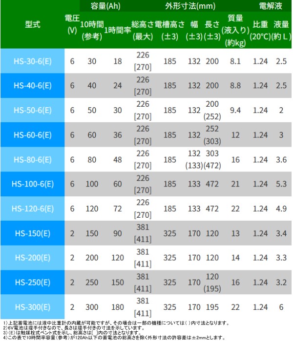 - 1)上記蓄電池には液中比重計の内蔵が可能ですが、その場合は一部の機種については( )内寸法となります。