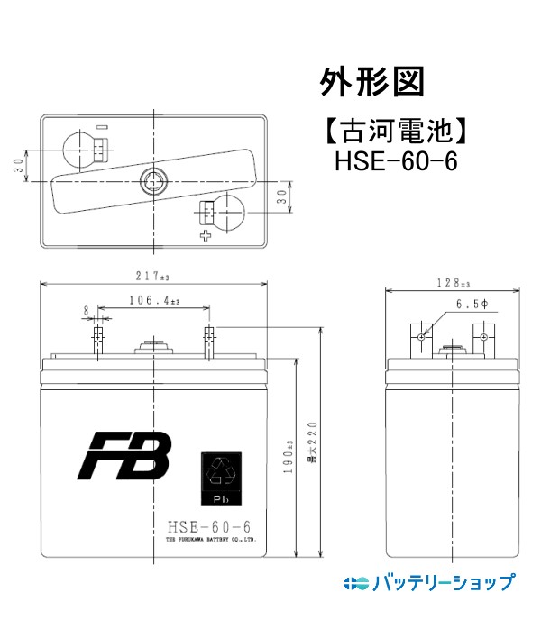 【GSユアサ】 HSE-60-6 制御弁式据置鉛蓄電池 6V 60Ah